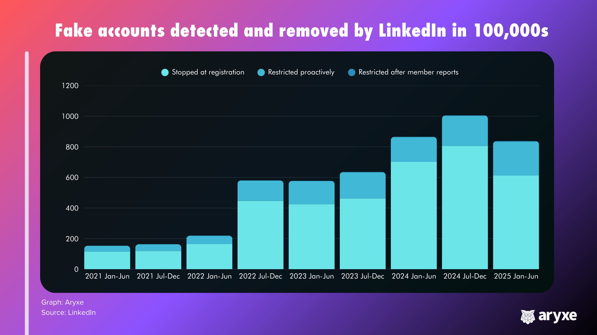 LinkedIn has acknowledged a steady increase in fraudulent accounts over recent years. Detection systems catch most fake profiles early - many are blocked during registration, others shortly after. That’s the good news.